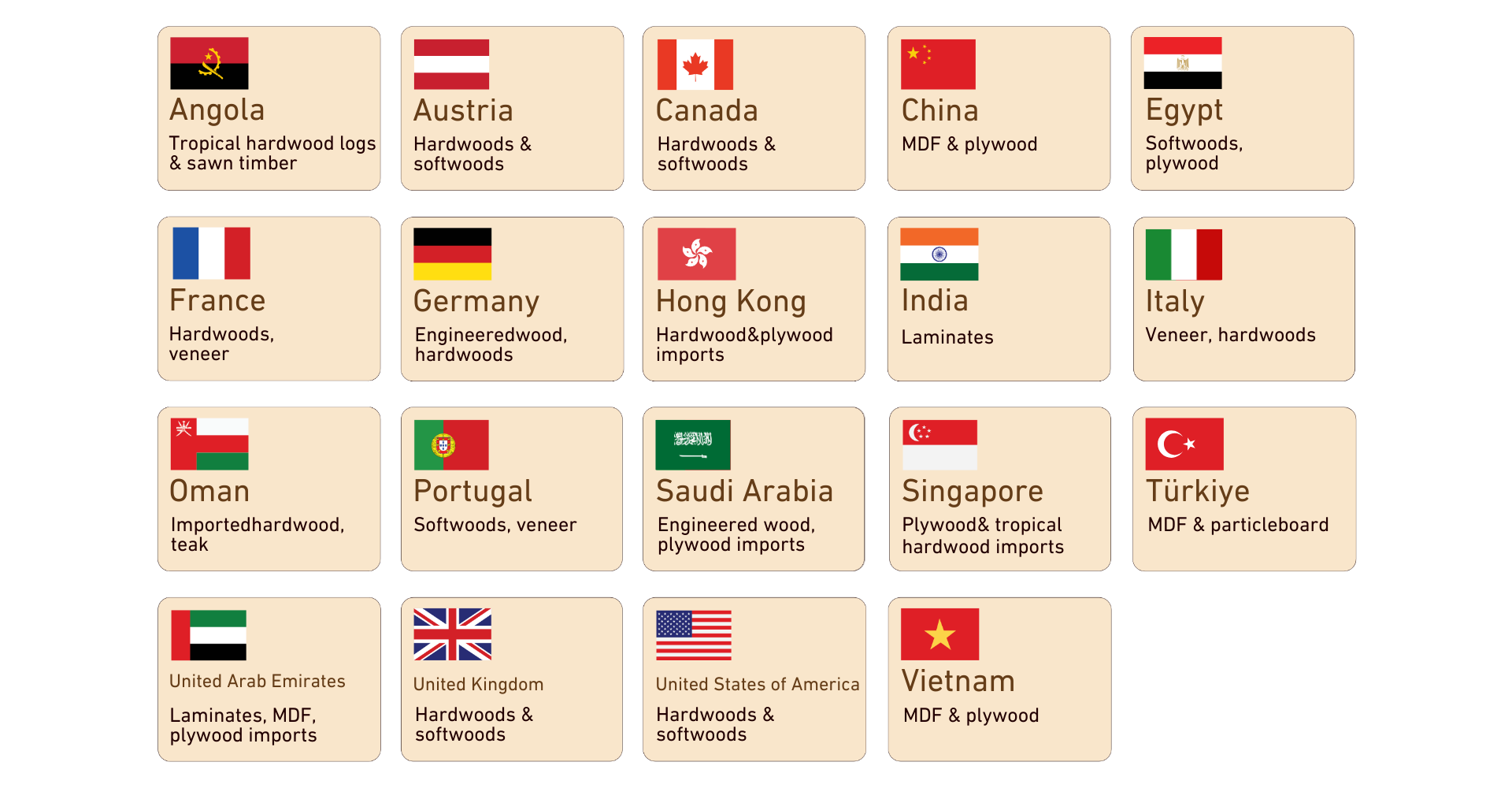 A curated visual installation at Saudi Wood Expo, showcases the global diversity of wood materials and craftsmanship. Designed to engage and inform, this feature highlights participating countries alongside the iconic wood types they’re known for, offering a showcase of the international wood industry in one place.